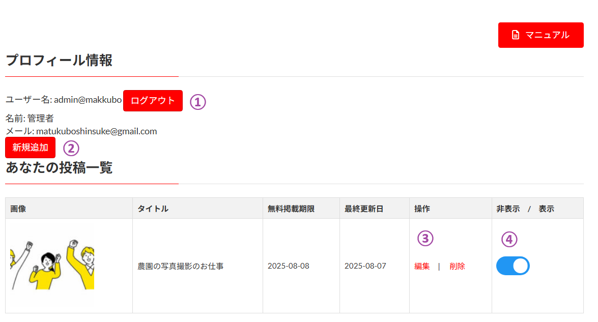 通常登録できる求人は1件のみです。掲載上限に達している場合は「新規追加」は表示されません。