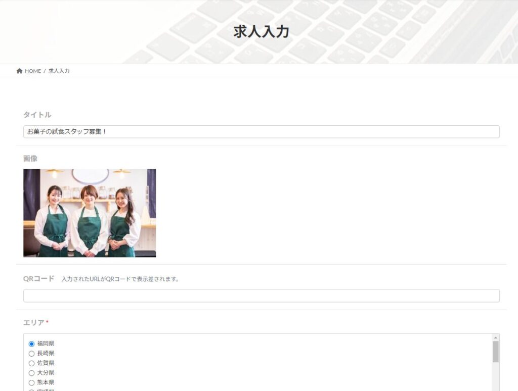 画像を追加しない場合、画像の代わりに黒背景に雇用形態が表示されます。